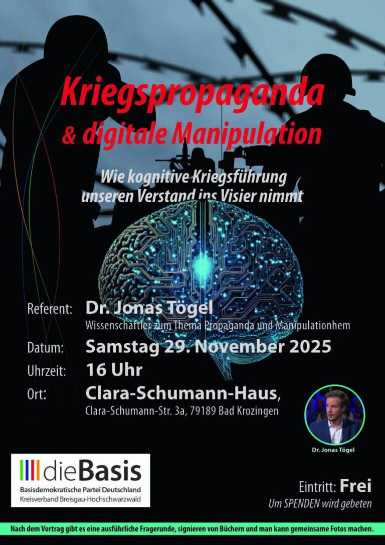 VeranstaltungVortrag und Diskussion: Kriegspropaganda & Digitale ManipulationWeiterlesenVortrag und Diskussion: Kriegspropaganda & Digitale ManipulationMartin Loose27.11.2025